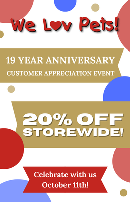 It’s our way of saying THANK YOU for supporting your local pet store. Don’t miss the biggest event of the year!